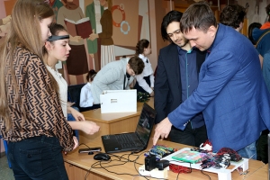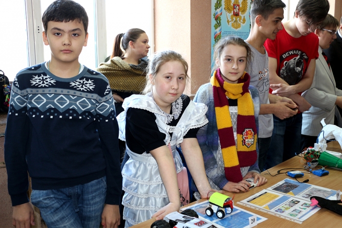1-е место – Владислав Надярный, Илья Солтус, Алёна Уварова с проектом «Робот-пылесос» (МБОУ СОШ п. Октябрьский);