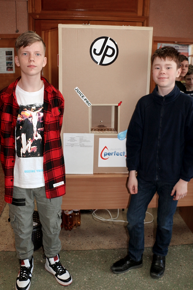 Огромный интерес вызвал проект JUICE-PRO сборной команды DISPENSER’S TEAM в составе Данила Макарьевского, Никиты Артеменко (МОУ СОШ № 2, МОУ СОШ № 6 г. Комсомольска-на-Амуре): «Наш проект представляет устройство для автоматического розлива напитков. Мы создали наш проект, чтобы упросить жизнь человека. Вы подносите стаканчик к аппарату, и он наливает вам напиток. Не нужно нажимать ни на какие кнопки, всё срабатывает автоматически. Надеюсь, всем понравится», – поделился информацией о проекте Никита Артеменко.