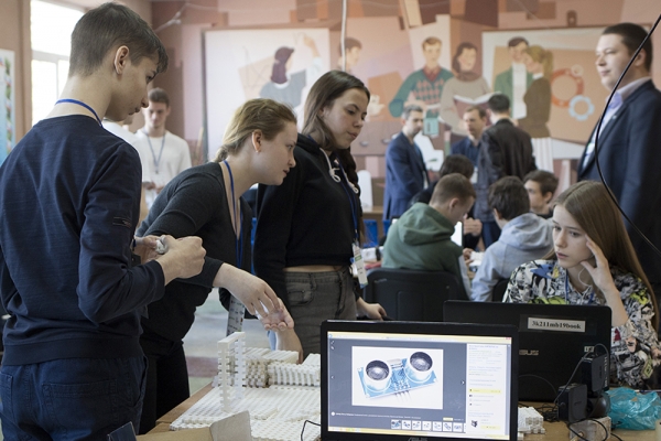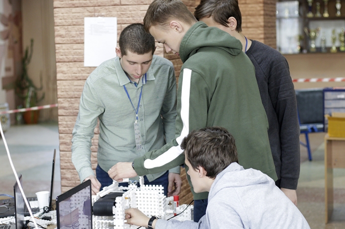 Ксения Александровна Зарубина, учитель информатики: «В конкурсе школа принимает участие второй год. В прошлом году участвовала другая команда, помладше, а в этом году участвовала команда постарше – учащиеся 10-го класса. Команда школьников представила проект «Умный ход» на базе платформы Arduino. Материалы для разработки предоставил КнАГУ, особенно удобными оказались напечатанные на 3D-принтере заготовки для быстрого макетирования. Конвейер продвигает изделие, а автоматика определяет параметры разработки, размеры, вес и соответствие стандарту этого изделия. Если соответствует – упаковывает, если нет – бракует. Конкурс нужен в таком формате однозначно, так как такой формат позволяет по максимуму погрузиться в разработку и выложиться на все сто».