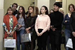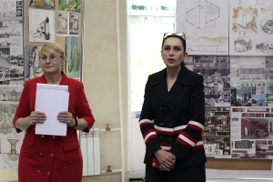 Доцент кафедры дизайна архитектурной среды В. В. Доровская тоже поздравила студентов-дизайнеров с открытием Пятнадцатой выставки «АРХиЮность» и пожелала им сил, выносливости и терпения по отношению к преподавателям, которым приходится преодолевать много трудностей, чтобы подготовить специалистов высокого уровня.