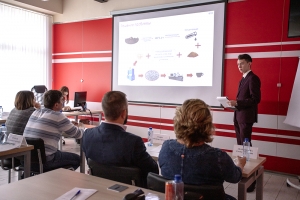 Молодые инноваторы университета представили на суд жюри проекты будущих разработок в виде презентаций. Эксперты оценивали проекты по критерию «Научно-технический уровень продукта, лежащий в основе проекта».