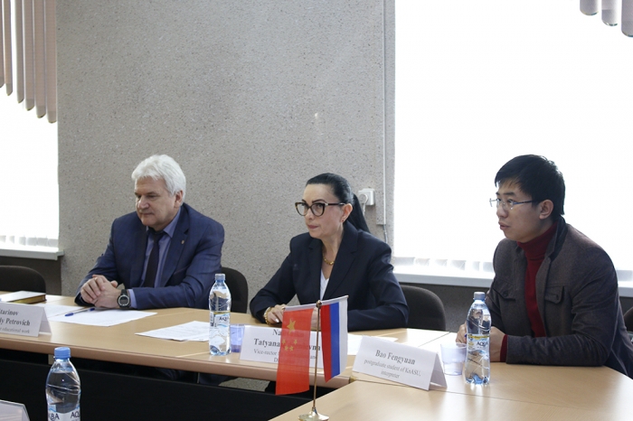 В начале мероприятия проректор по учебно-воспитательной работе и общим вопросам Т. Е. Наливайко поприветствовала гостей и рассказала о развитии университета: «КнАГУ является динамично развивающимся университетом, трансформированным из технического в классический университет, в состав которого входят 10 факультетов и 1 институт, которые осуществляют подготовку специалистов для градообразующих промышленных предприятий нашего города. Факультеты, вызвавшие интерес у китайской стороны, ФКС и ИКПМТО являются старейшими и фундаментальными факультетами нашего университета».