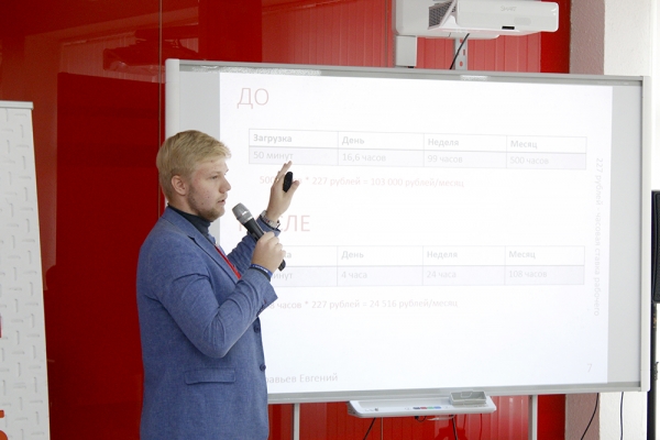 Своими впечатлениями о конкурсе поделился участник команды «Суровые роботы» студент ЭТФ Марк Финогеев: «Мы выбрали кейс, связанный с проектированием и макетированием роботизированной линии по мелкосерийной сборке электротехнических шкафов. Данная тематика нам очень близка. Во-первых, мы представители электротехнического факультета, во-вторых, активно занимаемся изучением отрасли промышленной робототехники. На момент полуфинала получилось разработать полную концепцию роботизированного комплекса, который способен проделать отверстия в монтажной плите (заготовке) и установить на нее все необходимые комплектующие. На финале мы хотим представить полностью рабочую систему, которая должна справиться с промышленной задачей. Но для этого требуется еще раз провести необходимые расчеты и собрать воедино все модули и комплектующие комплекса».