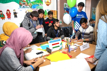 Киргизская студентка Айназик Айдарова: «Сегодня всё замечательно было. Нашу национальную шапку “Колпак” сделали очень много людей, мы видели, с каким интересом они шили. И мы сами тоже поучаствовали: делали куклу, бусы, рисовали, даже выиграли призы и получили сертификат. Всё прошло интересно, дружелюбно и молодёжно».