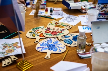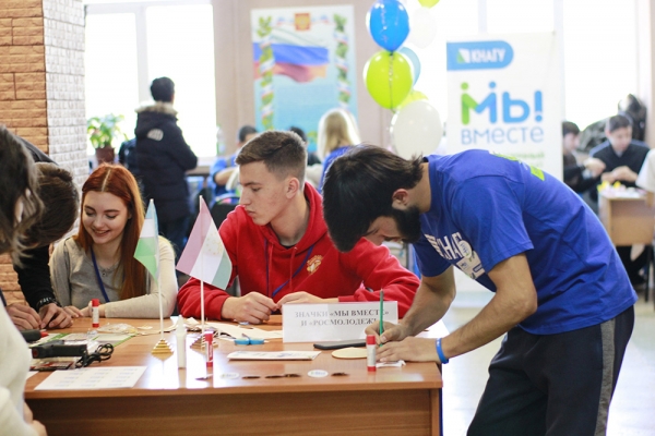 В холле актового зала университета состоялись мастер-классы по национальным ремёслам (изделиям), отражающим культуру русского, таджикского, киргизского, китайского, мьянманского, нанайского и других народов. Здесь участники смогли попробовать разные стили русской росписи по дереву; сшить русскую куклу «Хороводницу» и национальную киргизскую шапку «Колпак»; изготовить мьянманскую матрешку и традиционную нанайскую куклу «Акоан»; сплети фенечки со славянскими узорами и сделать мьянманские бусы; попробовать разные техники и виды оригами. Привлекали внимание мастер-классы по таджикской живописи и китайской каллиграфии, также участники смогли сделать себе значки «Мы вместе» и «Росмолодёжь».