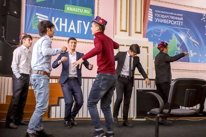 Далее свои творческие номера на сцене показали таджикские студенты КнАГУ. Каждый номер выступающих окутывал зал энергией веселья и задора. Зрители поддерживали исполнителей бурными аплодисментами и танцами. Мероприятие согрело всех жаркими танцами, проникновенными песнями, улыбками и искрами горящих глаз выступающих.