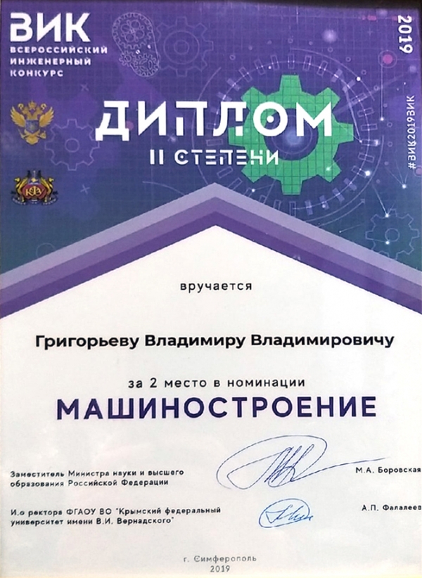Поздравляем Владимира Владимировича Григорьева с выдающимся достижением, желаем и дальше развиваться в инженерной деятельности!
