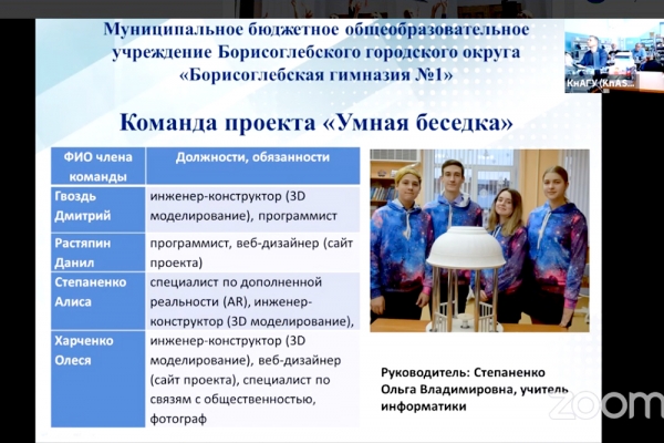 2-е место – Данил Растяпин, Алиса Степаненко, Артём Мицкевич, Никита Мячин с проектом «Умная сеть освещения» (г. Борисоглебск, МБОУ БГО «Борисоглебская гимназия № 1», 8-й класс, 7-й класс);