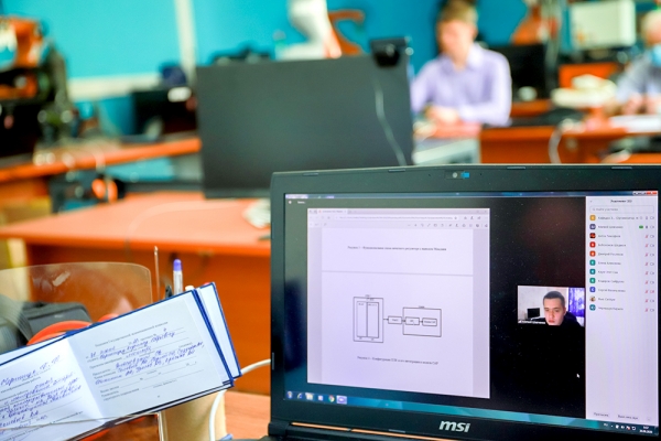 Онлайн-защиты ВКР факультета энергетики и управления проходили в Научно-образовательном центре (НОЦ) «Промышленная робототехника и передовые промышленные технологии». Деятельность Центра направлена на решение образовательных и научных задач. На его базе осуществляется подготовка специалистов в области промышленной автоматики и робототехники. Помимо этого, сотрудники НОЦ разрабатывают автоматизированные и роботизированные комплексы для реальных производственных задач.