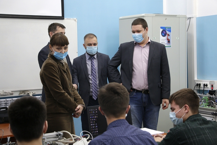 Затем гостей ждала экскурсия в научно-образовательный центр «Промышленная робототехника и передовые промышленные технологии», где руководитель центра С. И. Сухоруков и декан факультета энергетики и управления А. С. Гудим рассказали о развитии автоматизации и робототехники на российском Дальнем Востоке, продемонстрировали возможности роботизированной техники, рассказали о реализации образовательных программ, исследовательских и инжиниринговых проектов в области промышленной автоматизации и робототехники с применением новейших производственных технологий. Центр был создан на средства гранта Министерства образования и науки Российской Федерации и состоит из двух лабораторий, оснащённых самым современным оборудованием: лаборатории промышленной автоматики и лаборатории промышленной робототехники.