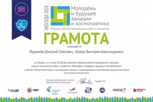 Аспиранты КнАГУ стали участниками финала Всероссийского межотраслевого молодёжного конкурса научно-технических работ и проектов «Молодёжь и будущее авиации и космонавтики», проходившего в рамках VII Международной недели авиакосмических технологий «Aerospace Science Week». Организатором конкурса выступает Московский авиационный институт. Конкурс проводится ежегодно с 2009 года. В нём участвуют студенты, молодые учёные и специалисты аэрокосмической и смежных с ней высокотехнологичных отраслей промышленности. Из-за эпидемиологической обстановки финал конкурса состоялся с использованием платформы Zoom.