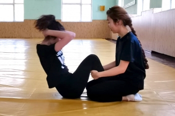 Поздравляем участниц соревнования по сгибанию и разгибанию туловища из положения лёжа на личное первенство