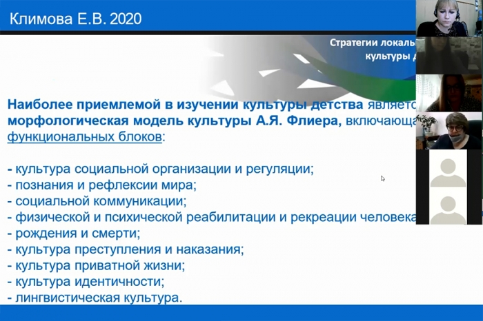 - «Стратегии локального изучения культуры детства», автор – Екатерина Викторовна Климова, аспирант кафедры «История и культурология» (руководитель Яна Сергеевна Иващенко).