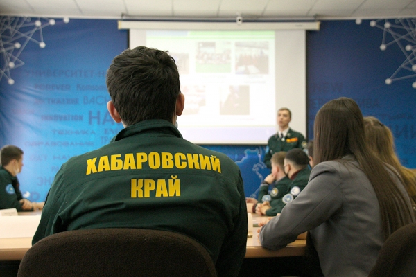 Т. Е. Наливайко, проректор по учебно-воспитательной работе и общим вопросам КнАГУ; М. В. Чувашов, командир Хабаровского регионального отделения МОО РСО; В. В. Саприн, специалист отдела по молодёжной политике администрации Комсомольска-на-Амуре; Алёна Огородник, молодёжный советник при главе города.