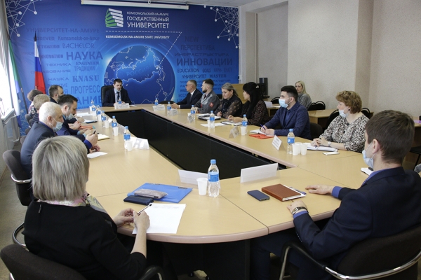 В рамках профориентации и содействия трудовой занятости студентов и трудоустройству выпускников в Комсомольском-на-Амуре государственном университете состоялась встреча руководства вуза с ведущими специалистами ПАО «Амурский судостроительный завод». Встреча прошла в формате круглого стола, на котором обсуждались вопросы подготовки кадров для предприятия и сотрудничества в проведении совместных научно-исследовательских и опытно-конструкторских разработок и др.