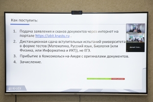 Доцент кафедры «Промышленная электроника» Д. А. Киба в своём слове рассказал о преимуществах образования и перспективах трудоустройства студентов направления «Биотехнические системы и технологии»; подробно изложил порядок зачисления абитуриентов в 2021 г., а также условия проживания иностранных студентов в общежитии университета и начисления стипендии студентам-бюджетникам.