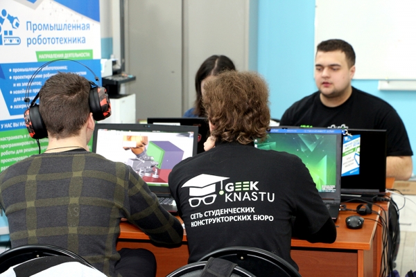 На данный момент сеть Geek.Knastu насчитывает 14 студенческих конструкторских и проектных бюро внутри вуза по различным направлениям, начиная с промышленной робототехники и заканчивая бизнесом и предпринимательством. Каждое СКБ внутри сети работает автономно, основываясь на системе наставничества «школьник-студент-преподаватель».