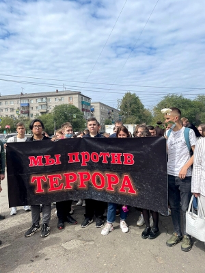 Затем на территории собора Казанской иконы Божьей Матери состоялась молодёжная акция «Нет террору». На мероприятии присутствовали представители администрации города, русской православной церкви, общественных и молодёжных организаций, студенты, школьники, молодёжь города. В рамках акции для всех присутствующих батюшка провёл молитву в память о погибших. Далее студенты Комсомольского-на-Амуре государственного университета совместно с другими участниками молодёжной акции «Нет террору!» сложили слово «МИР» из поминальных свечей в память о тех, кто погиб от рук террористов. Мероприятие нашло отклик в каждом из присутствующих студентов, молодые люди выразили готовность предупреждать любые проявления экстремизма и терроризма.
