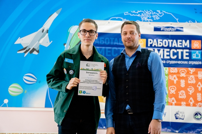 В ходе мероприятия прошло награждение лучших бойцов по итогам летнего трудового семестра. В церемонии награждения принял участие начальник управления по физической культуре, спорту и молодёжной политике администрации Комсомольска-на-Амуре Д. А. Заплутаев: «Я рад видеть, что вы большая дружная семья! Когда выходит боец того или иного студенческого отряда, такая энергетика и мощная поддержка идёт из зала, за это вам огромное спасибо! Вы молодцы, поддерживайте друг друга всегда, двигайтесь вместе! Отмечу, что отрядное движение г. Комсомольска-на-Амуре на сегодняшний день занимает высокое место не только в Хабаровском крае, но и за его пределами – среди других студотрядов! Мы ежегодно предоставляем большое количество бойцов, берём новые объекты и выполняем качественно работу, получая слова благодарности от работодателей! Выражаю слова признательности КнАГУ за поддержку и развитие отрядного движения в своём учреждении!».