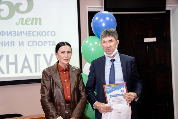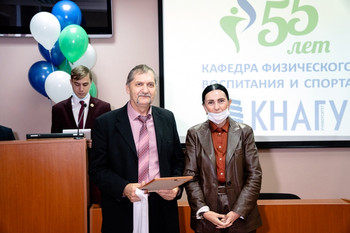 Почётную грамоту университета из рук проректора КнАГУ получили преподаватели и сотрудники кафедры: заслуженный тренер РФ В. К. Стручков, на протяжении многих лет возглавлявший кафедру физического воспитания и спорта и стоящий у истоков её развития, И. М. Ткач, А. М. Заплутаев, Н. К. Дебелая, А. С. Трапезников, А. В. Ларин, М. Д. Конохова; студенты, достигшие высоких показателей в спорте: Алексей Милешин, Мария Воробьева, Николай Таран.