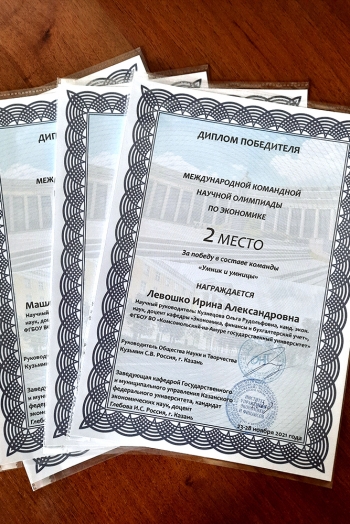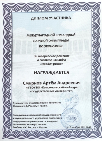 С 22 по 28 ноября 2021 года в г. Казани прошла международная заочная олимпиада по экономике, организаторами которой были Казанский федеральный университет и Общество науки и творчества.