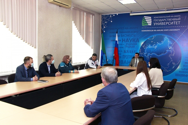 В рамках рабочего визита Комсомольский-на-Амуре государственный университет посетил заместитель министра экономического развития края Д. В. Пугачев. Основной целью визита было вручение почётных грамот от Министерства экономического развития Хабаровского края аспиранткам факультета энергетики и управления кафедры «Управление инновационными процессами и проектами» Вере Соколовой и Алине Пугачевой.