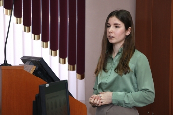- Мария Ефимова, гр. 1МЛм-1 (СГФ), с научной работой «Реализация речевых стратегий и тактик в текстах экологической тематики в оригинале и переводе» (руководитель – кандидат филологических наук Н. В. Малышева). С помощью выявленных речевых стратегии и тактик, выразительных средств достигается перлокутивный эффект высказываний, тем самым реализуется прагматический аспект.
