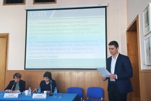 Студент социально-гуманитарного факультета КнАГУ Роман Громов прошёл конкурсный отбор и получил приглашение принять очное участие в конференции с докладом «Влияние военного времени на развитие рыбной отрасли Дальнего Востока на примере Среднеамурского государственного рыбопромышленного треста в 1941 г.» (научный руководитель – доктор исторических наук профессор Ж. В. Петрунина).