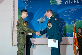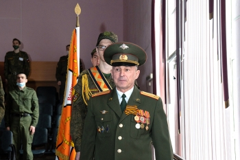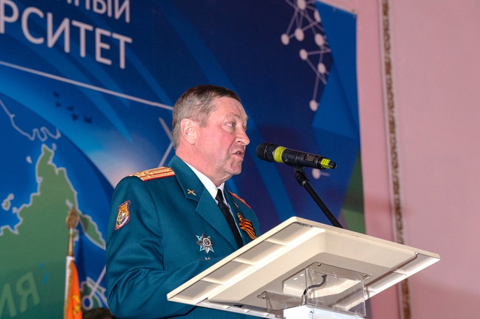 К словам поздравления присоединился начальник Военного учебного центра, кандидат исторических наук, доцент, полковник запаса С. И. Карпов: