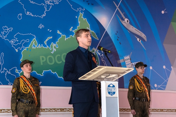 В преддверии великого праздника Дня Победы в Комсомольском-на-Амуре государственном университете состоялось торжественное собрание, посвящённое 77-й годовщине Победы советского народа в Великой Отечественной войне 1941–1945 годов. В мероприятии приняли участие офицеры и курсанты Военного учебного центра, преподаватели, сотрудники и студенты вуза. Почётными гостями собрания стали преподаватели Военного учебного центра – участники боевых действий: подполковники В. В. Тараненко, В. А. Решетник, В. А. Кучаев. Мероприятие было организовано Военным учебным центром и отделом организации воспитательной работы университета.