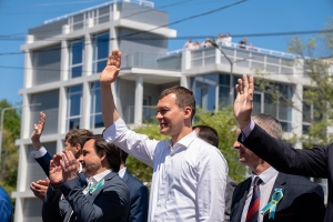 «Здесь живут люди особенного склада. Вы по праву можете гордиться своей малой родиной. Успехи России – это достижения всех наших граждан, а успехи Комсомольска-на-Амуре – это гордость не только самих горожан, но и всех жителей региона. Совместными усилиями мы строим достойное будущее для наших детей, и нас объединяет любовь к России и Хабаровскому краю. Мы едины, поэтому непобедимы! С праздником! С Днём России, с Днём города!»