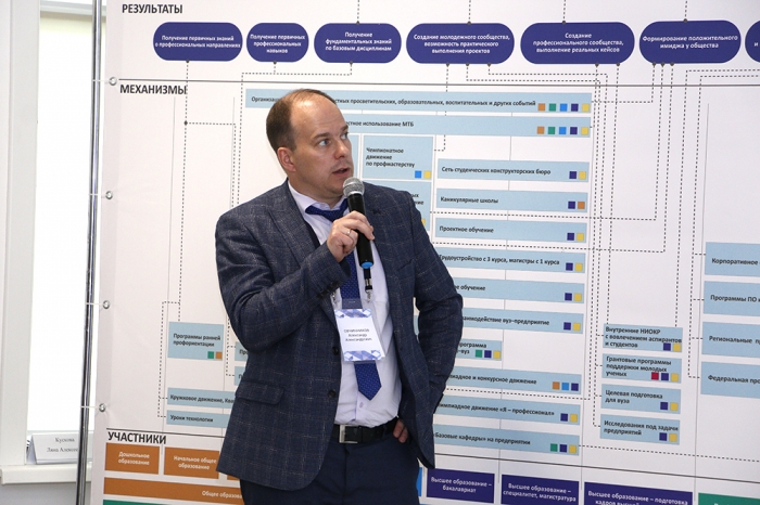 В ходе стратегической сессии спикерами были изложены лучшие практики по кластерному взаимодействию как эффективному механизму подготовки кадров для авиационной отрасли региона; представлена информация о реализации нового федерального проекта «Профессионалитет» в Хабаровском крае; были приведены промежуточные итоги профориентационной работы авиационного предприятия с ссузами; затронут вопрос профессионального становления школьников, направленности их на профессии авиастроения. Проректор по учебной работе Я. Ю. Григорьев в своём выступлении рассказал о реализации траекторий подготовки высококвалифицированных кадров в КнАГУ для авиационной промышленности региона.