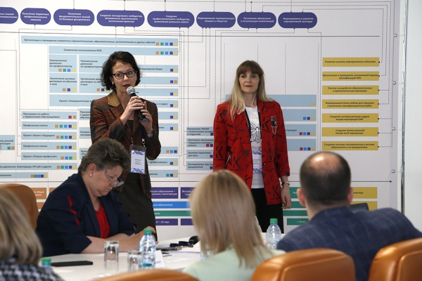 Затем прошла проектная работа в группах по направлениям: профориентационная работа, трудоустройство, образовательные программы, работодатели. По итогам работы состоялась презентация дорожных карт каждой группы по своему направлению. Команды представили комплекс мероприятий по решению проблем подготовки кадров для экономики города и региона.