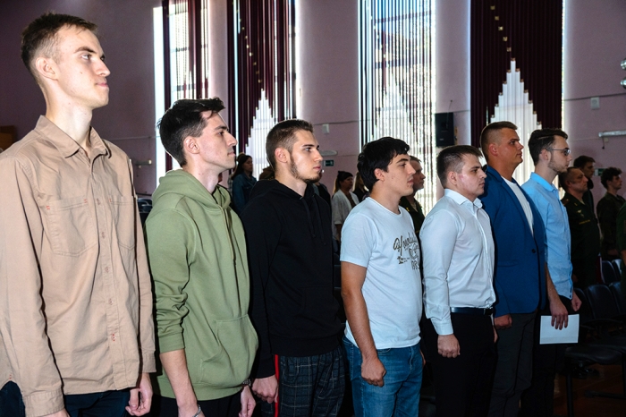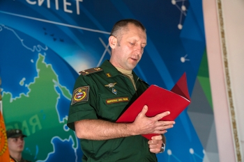 С поздравлением к выпускникам обратился начальник Военного учебного центра полковник запаса С. И. Карпов. Он отметил, что присвоение первого офицерского воинского звания «лейтенант» это не только особое и торжественное событие в жизни каждого гражданина, но и результат усердия, трудолюбия и настойчивости, которые курсанты проявили изучая военные дисциплины!