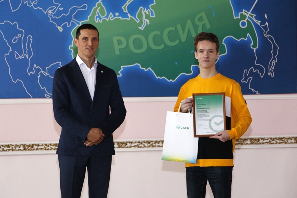 Далее А. Ю. Сидоренко провёл церемонию вручения. Более 50 первокурсникам, набравшим по результатам ЕГЭ наивысшие баллы, были вручены сертификаты на получение бесплатной пожизненной банковской карты статуса gold, а также памятные брендированные подарки.