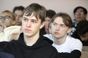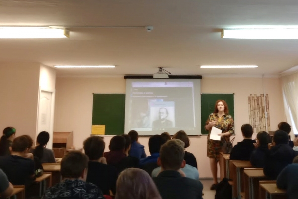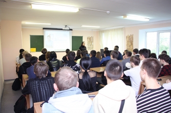 Далее заведующая кафедрой «Общеобразовательные дисциплины» Е. А. Малых рассказала студентам о выдающемся российском учёном К. Э. Циолковском как примере развития и самореализации человека, стремящегося к претворению в жизнь своей мечты во имя блага страны и последующих поколений, о его вкладе в развитие отечественной и мировой космонавтики. В конце разговора студенты поучаствовали в викторине, которая окунула ребят в атмосферу космоса.