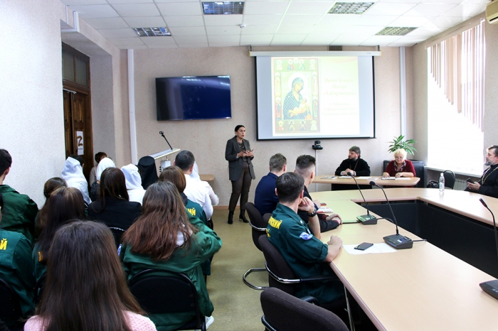 20 октября 2022 года в КнАГУ состоялась презентация представителями Духовно-культурного центра во имя святой мученицы Татианы нового издательского проекта Амурской епархии «“Сокровище неиждеваемое”: иконы Божией Матери, связанные с историей Дальнего Востока» – художественного альбома с историко-культурологическим комментарием. Участие в презентации проекта приняли проректор по воспитательной работе и работе с молодёжью Комсомольского-на-Амуре государственного университета Т. Е. Наливайко, председатель Объединённого совета обучающихся Ярослав Ерофеев, а также студенческий актив, бойцы штаба РСО, студенты и преподаватели социально-гуманитарного факультета, иностранные студенты.