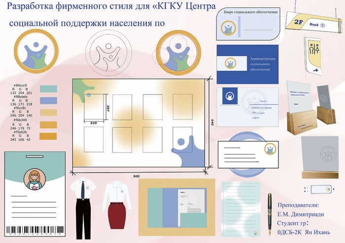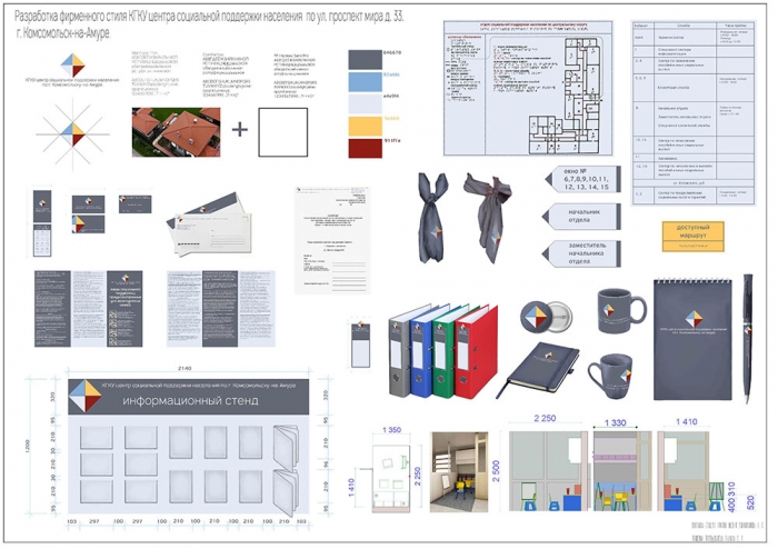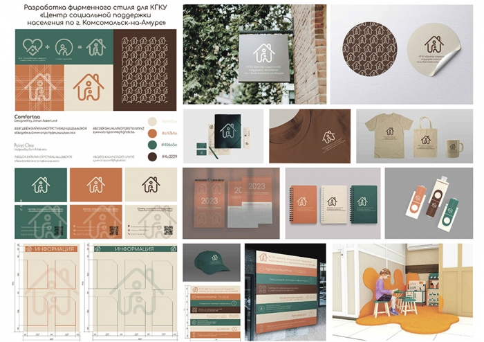 Студенты-дизайнеры КнАГУ в течение всего периода обучения в университете активно занимаются разработкой дизайн-проектов для организаций и учреждений нашего города. Так, в июне 2022 г. на факультет кадастра и строительства с просьбой о создании фирменного стиля учреждения обратилось руководство КГКУ «Центр социальной поддержки населения по г. Комсомольску-на-Амуре». Первоначально была поставлена задача сделать учреждение более узнаваемым и организовать внутреннюю среду, доступную для посетителей учреждения.