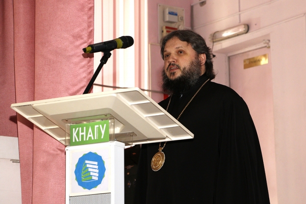 С поздравлениями к собравшимся преподавателям, сотрудникам и курсантам Военного учебного центра обратились: ректор университета Э. А. Дмитриев, начальник военного учебного центра полковник запаса С. И. Карпов, Преосвященный епископ Амурский и Чегдомынский Николай, начальник цикла связи Военного учебного центра подполковник запаса В. А. Зеленов, курсант 302 учебного взвода Ромашов Денис, а также выпускник военного учебного центра, старший лейтенант В. А. Мишагин.