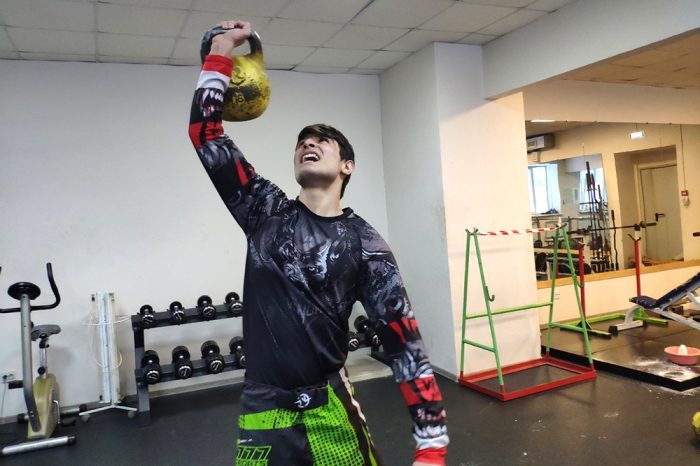 III место – Азимзода Шахдод, при собственном весе 58,6 кг он смог совершить 128 подъёмов гири массой 24 кг, что соответствует – 2677,8 очков по той же таблице Уилкса, которая сравнивает результаты спортсменов с учётом собственного веса.