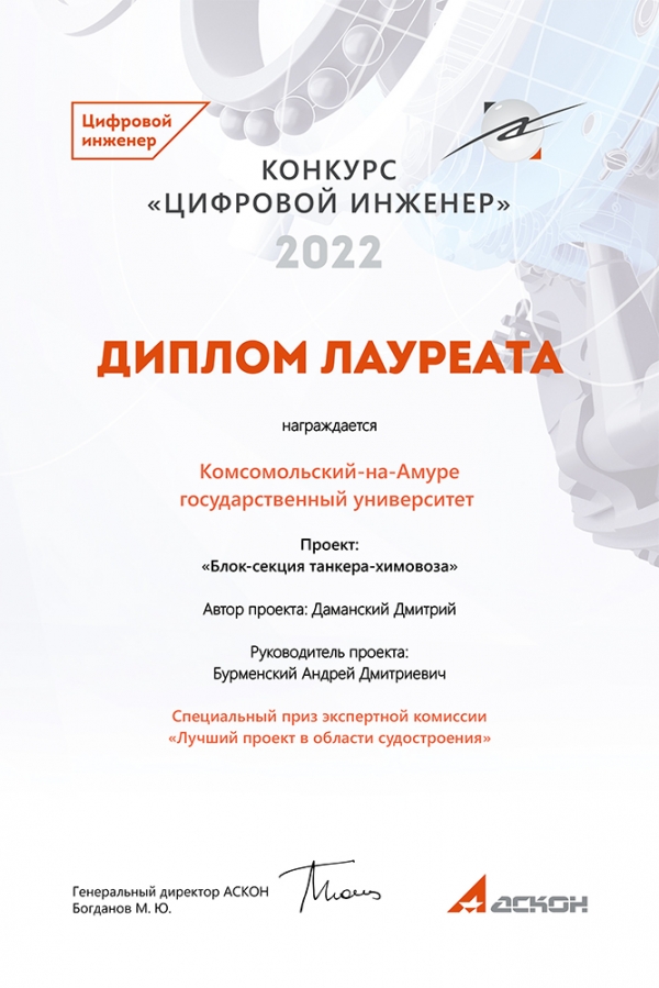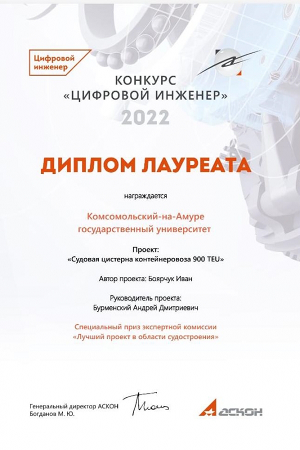 Студенты КнАГУ – лауреаты международного конкурса компании АСКОН «Цифровой инженер»