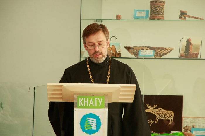 Студенческой молодёжи, сотрудникам и преподавателям о святителе Иннокентии (митрополите Московском (в миру Иван Евсеевич Попов-Вениаминов)) рассказал иеромонах Иннокентий (Галямов), клирик собора Казанской иконы Божией Матери, назначенный Владыкой духовным руководителем духовно-просветительского центра КнАГУ. С 1823 г. началось миссионерское служение будущего апостола Сибири и Америки; 45 лет отдал святитель Иннокентий делу просвещения народов Камчатки, Алеутских островов, Северной Америки, Якутии, Хабаровского края, совершая свой апостольский подвиг в суровых условиях, с большими опасностями для жизни. Святитель Иннокентий крестил десятки тысяч людей, строил храмы, при которых основывал школы и сам обучал в них основам христианской жизни. Помогало ему в трудах знание различных ремёсел и искусств. Во время многочисленных поездок святитель Иннокентий изучал язык, быт и нравы народов, среди которых проповедовал. Его труды по географии, этнографии и языкознанию получили мировую известность.