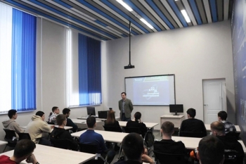 В СКБ «Интеллектуальные технологии» доцент кафедры прикладной математики Сергей Александрович Гордин рассказал о взаимосвязи учебного процесса с наукой и производством. Лекция проводилась на тему «Взаимосвязь науки, образования и производства».
