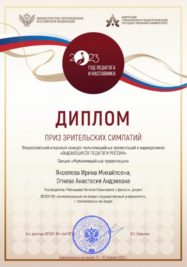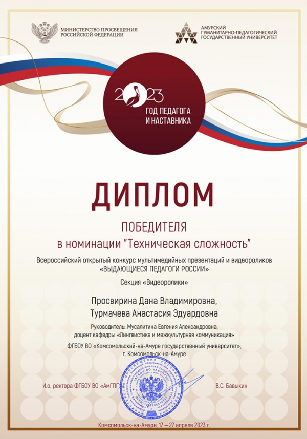 Студенты КнАГУ – победители Всероссийского открытого конкурса мультимедийных презентаций и видеороликов «Выдающиеся педагоги России»