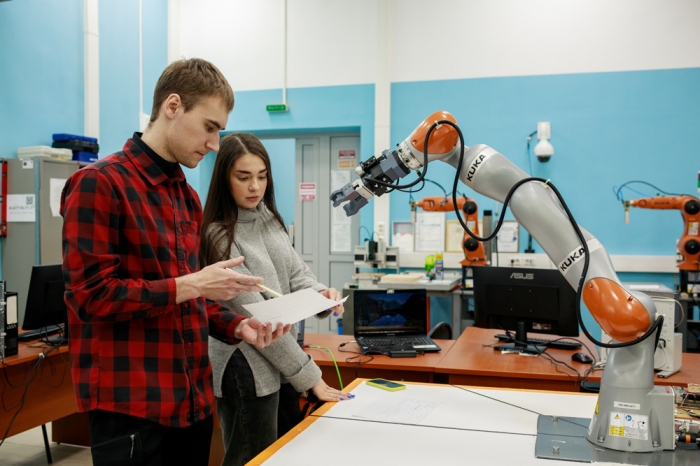 Маркел: В данный момент работаю над идентификацией систем управления электрическим приводом промышленного робота. Дело в том, что производитель промышленных роботов, как правило, не даёт подробных технических характеристик действующих приводов робота, необходимых для формирования имитационных моделей робототехнических систем. В связи с этим мы проводим экспериментальные исследования, чтобы идентифицировать имеющийся электрический привод робота, что позволит в дальнейшем создавать виртуальные модели промышленных роботов с целью апробации различных алгоритмов управления. Такое исследование поможет сделать работу с роботом максимально эффективной и безопасной.