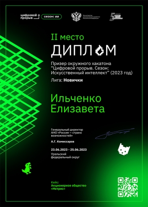 Ильченко Елизавета: Я была капитаном команды и разработчиком искусственного интеллекта. Распределила роли по критерию кто в чём больше разбирается. Лямин Михаил у нас отвечал за разметку и сбор dataset; Ксения Собакинская – за интерфейс. Изначально в планах было сделать сайт, но потом решили на PyQt написать десктопное приложение, Дарья Никонова у нас отвечала за дизайн и презентацию. В наших дальнейших планах поучаствовать в международном этапе и выйти на уровень победителя соревнований, а также повысить свой опыт и навыки по созданию искусственного интеллекта.