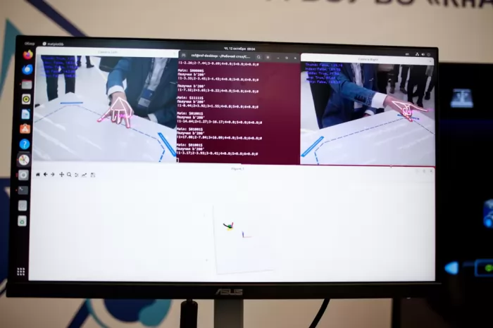 - Коллаборативный роботизированный комплекс c интеллектуальной системой жестового управления. Комплекс создан на базе коллаборативного робота и самостоятельно разработанной интеллектуальной системы управления. Система осуществляет распознавание руки человека в пространстве, определение её координат, факта сжатия/разжатия кисти. Далее распознанные данные преобразуются в команды для робота, в соответствии с которыми он перемещает в пространстве захват и повторяет действия человека (разработан комплекс на факультете энергетики и управления в научно-образовательном центре «Промышленная робототехника и передовые промышленные технологии», автор проекта – С. И. Сухоруков).