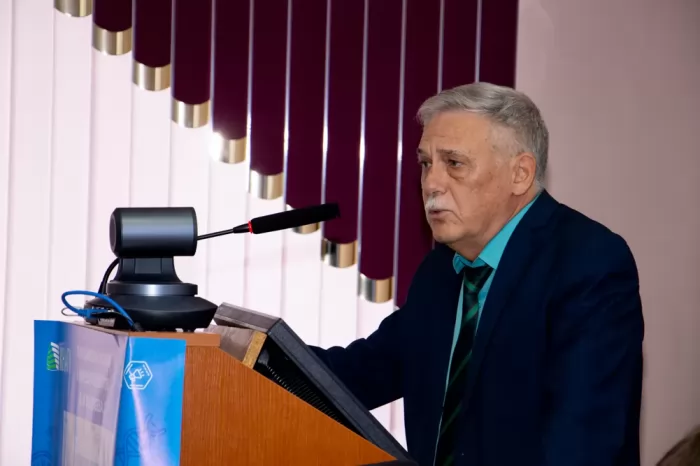 «Приветствую всех участников круглого стола. Это мероприятие проходит в рамках гранта Министерства науки и высшего образования РФ, направленного на развитие студенческих научных сообществ. Надо отметить, что в конкурсе участвовали различные СКБ со всей России. Мы вошли в десятку лучших СКБ по объёму финансирования и по общему рейтингу заняли 5-е место. Научное сообщество нашего университета обогнало многие крупные столичные вузы. Тематика данного круглого стола является очень интересной и актуальной, поскольку композиционные материалы получают из двух и более компонентов с существенно разными химическими и физическими характеристиками, при изготовлении получается, по сути дела, новый материал с улучшенными характеристиками. В нашем университете много лет занимались исследованием композитных материалов, изготавливали их по заказу предприятий. Это были совместные работы В. В. Телеша, В. В. Петрова и А. Е. Проценко. Молодой учёный Александр Евгеньевич Проценко пошёл дальше в изучении этого вопроса, сейчас он занимается рециклингом композитных материалов, данная работа является актуальной и поддерживается грантом РНФ. Я нисколько не сомневаюсь, что сегодня прозвучат очень интересные сообщения и будут интересные обсуждения. Всем желаю успехов в научной деятельности», – обратился с приветственным словом проректор по научной работе Александр Витальевич Космынин, доктор технических наук, профессор, действительный член Российской академии естествознания (РАЕ), член европейской академии естественных наук (EANH).