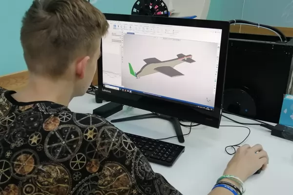 Далее школьники изучили техники обработки модельных материалов и изготовили простейшие свободно летающие модели самолётов. При изготовлении были применены чертежи, полученные по 3D-моделям, и распечатаны на 3D-принтере отдельные детали.
