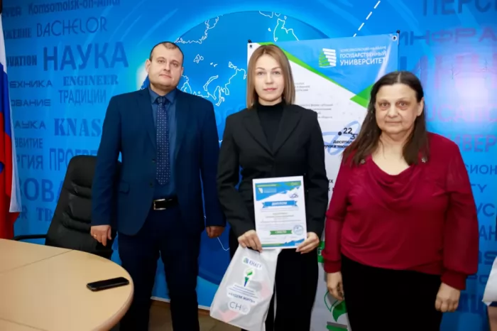 С результатами конкурса можно ознакомиться на сайте. Торжественное награждение победителей конкурса провели проректор по учебной работе КнАГУ Я. Ю. Григорьев и доцент кафедры «Кадастры и техносферная безопасность» Г. Е. Никифорова.
